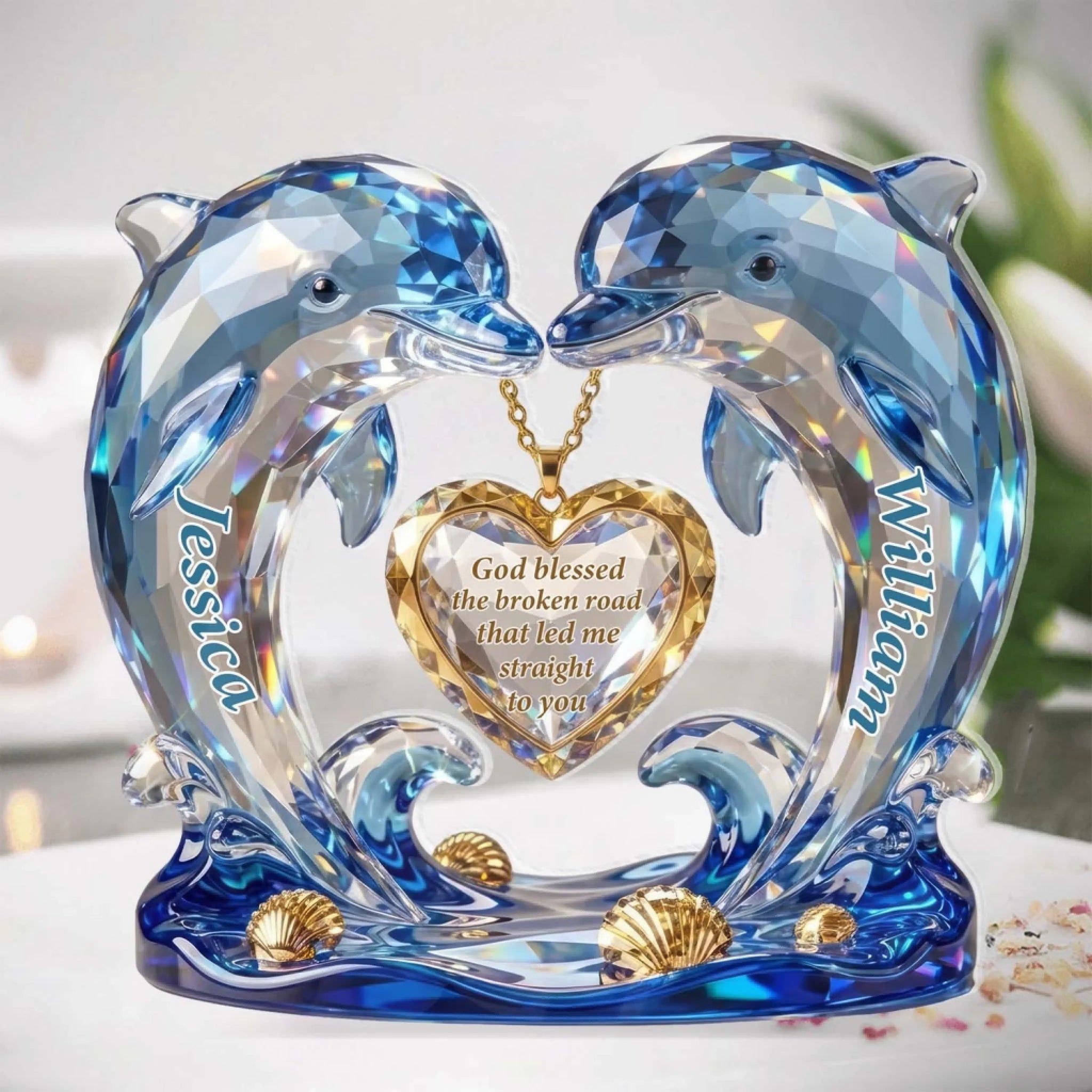 Crystal Dolphin Journey - Personal isierte Segens plakette | Jubiläums gehalte Geschenk