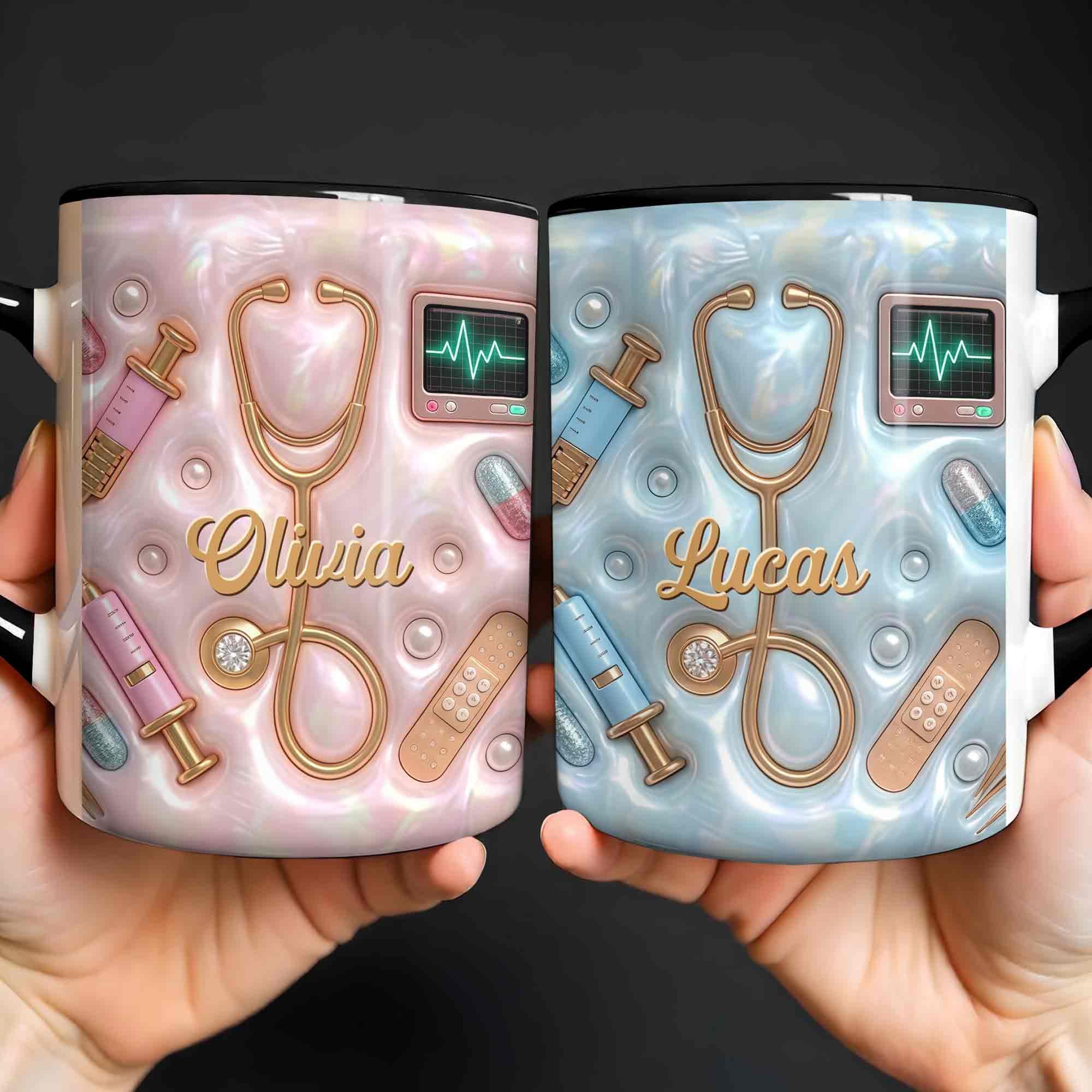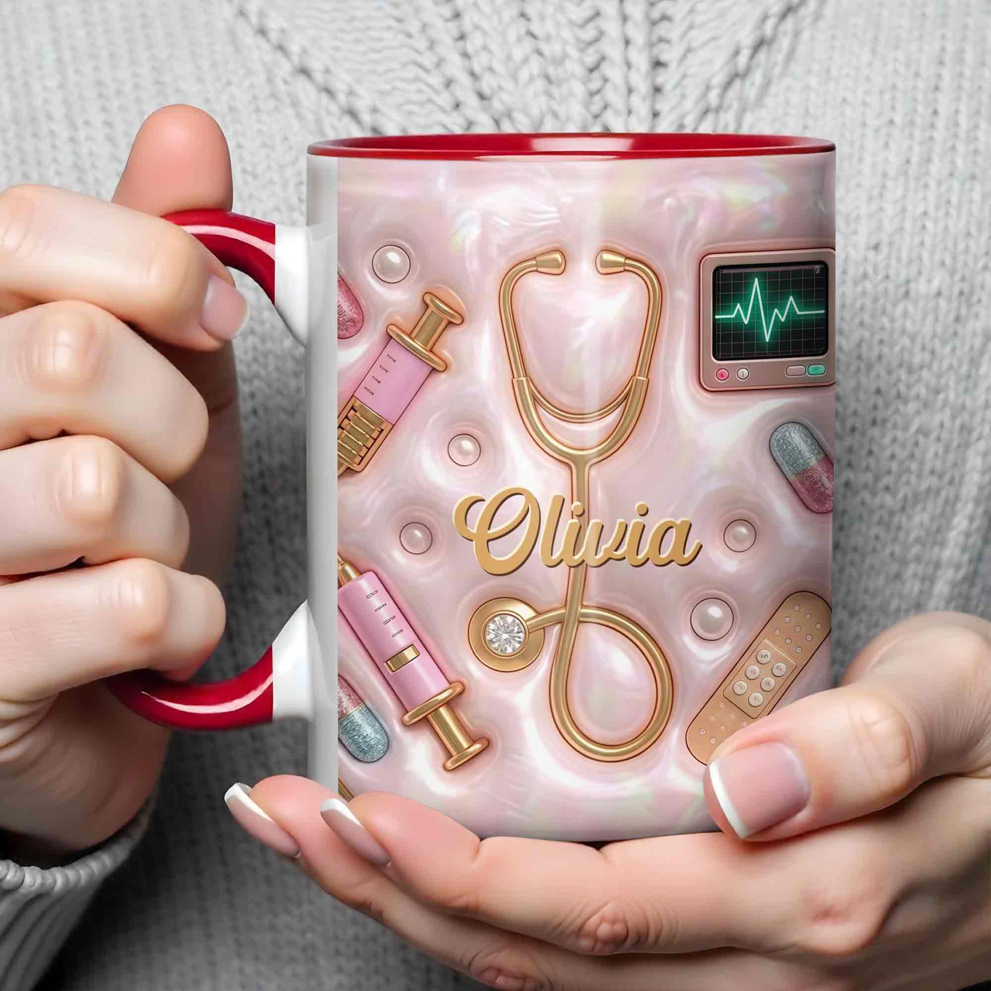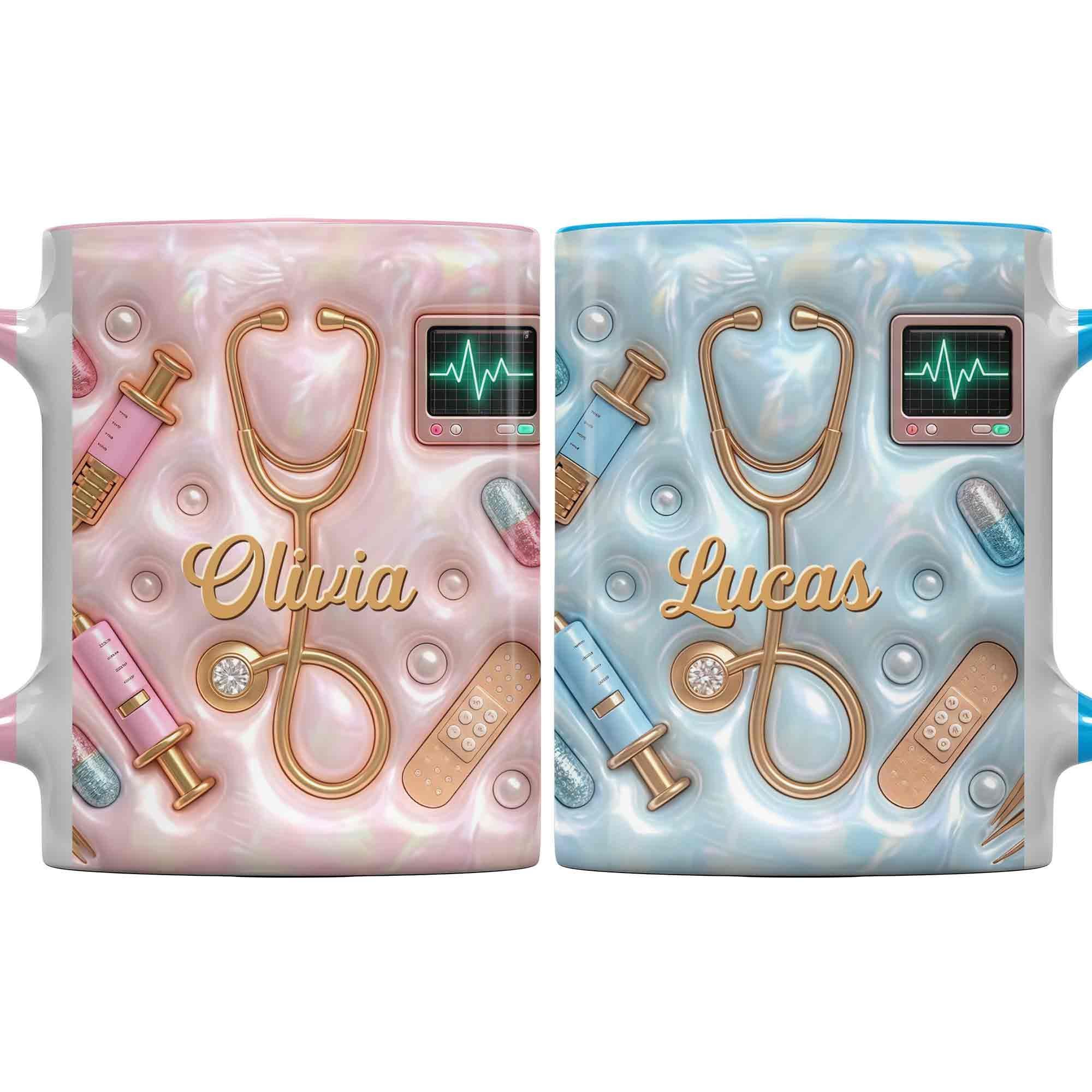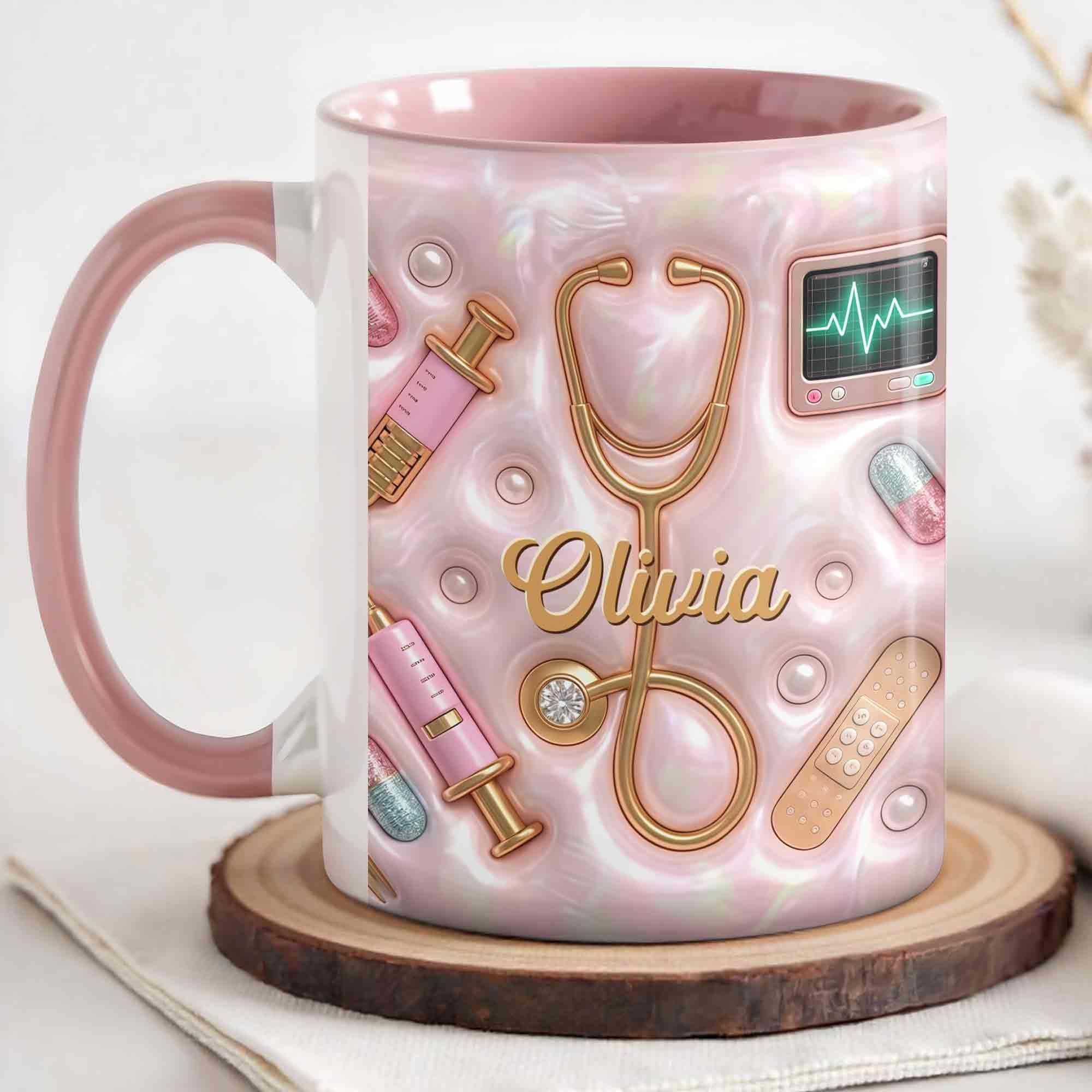 Geschenk für Krankenschwester – personalisierte Tasse mit 3D medizinischen Werkzeugen & Perlen-Design – liebevolle Wertschätzung für Pflegekräfte