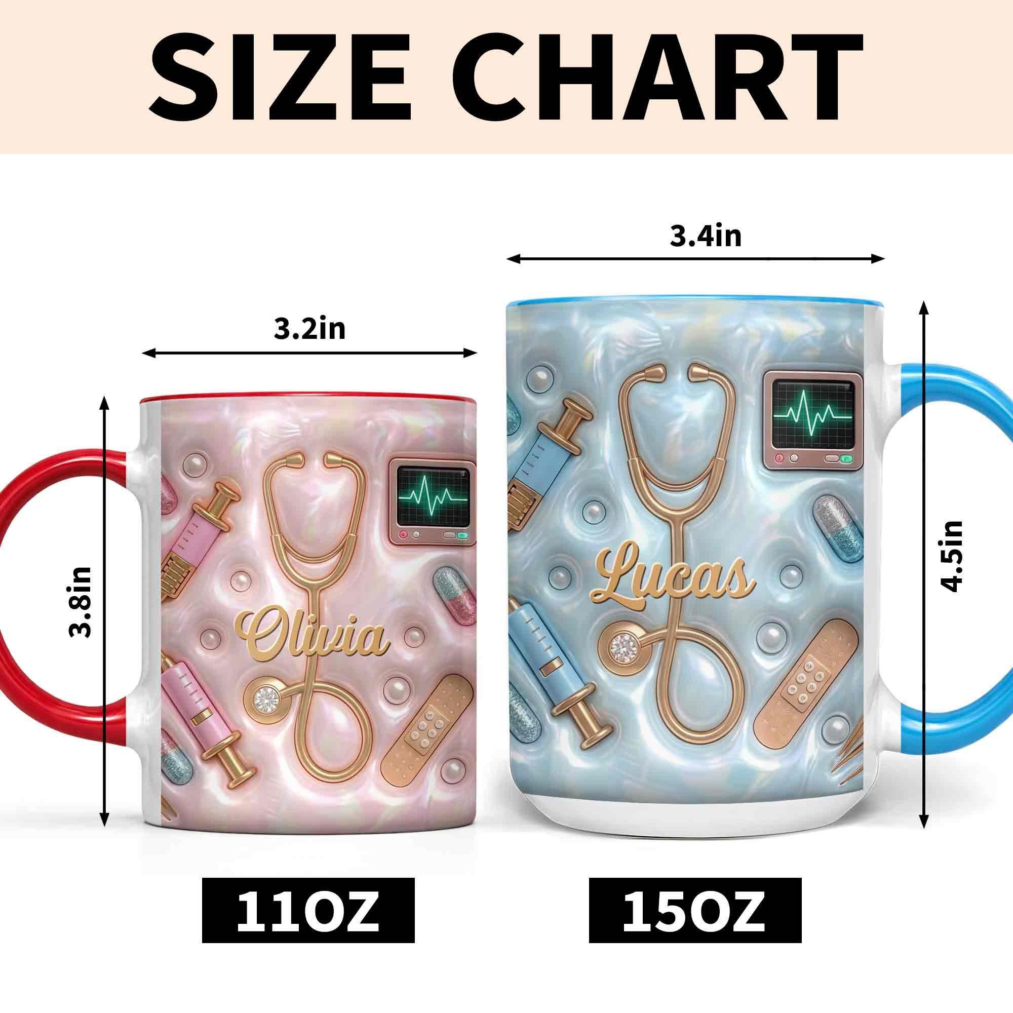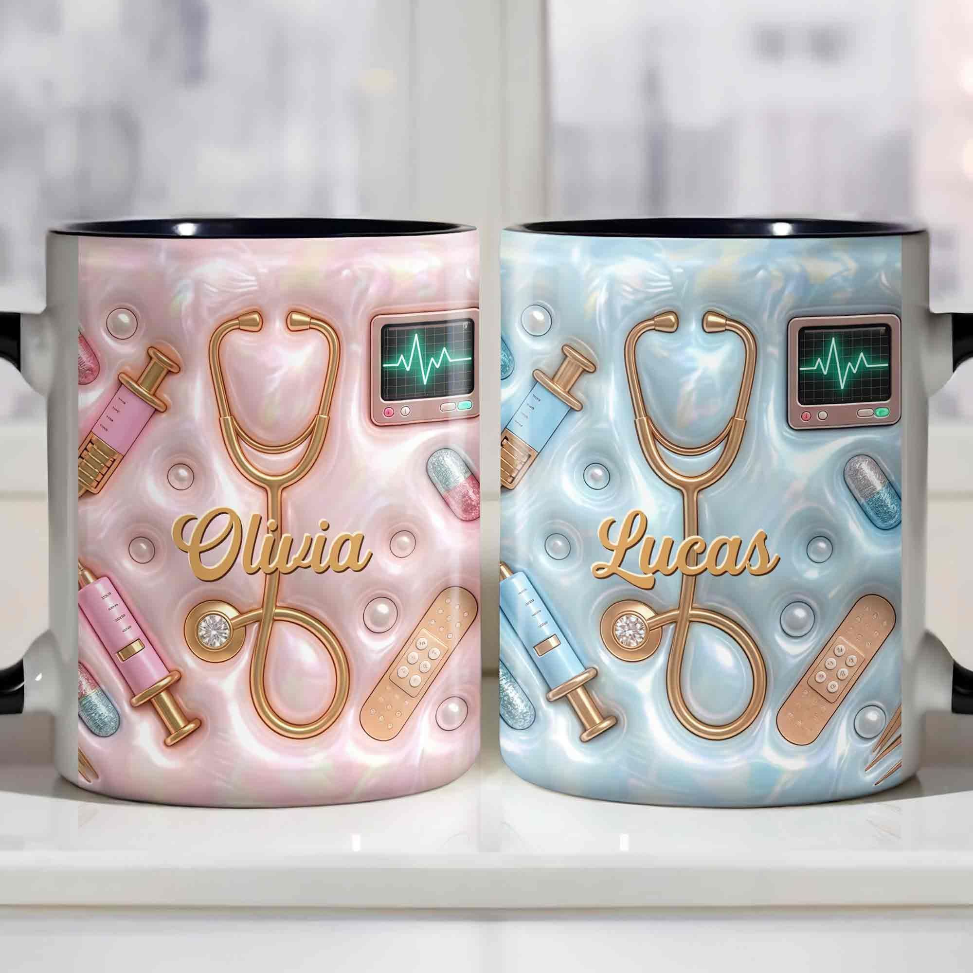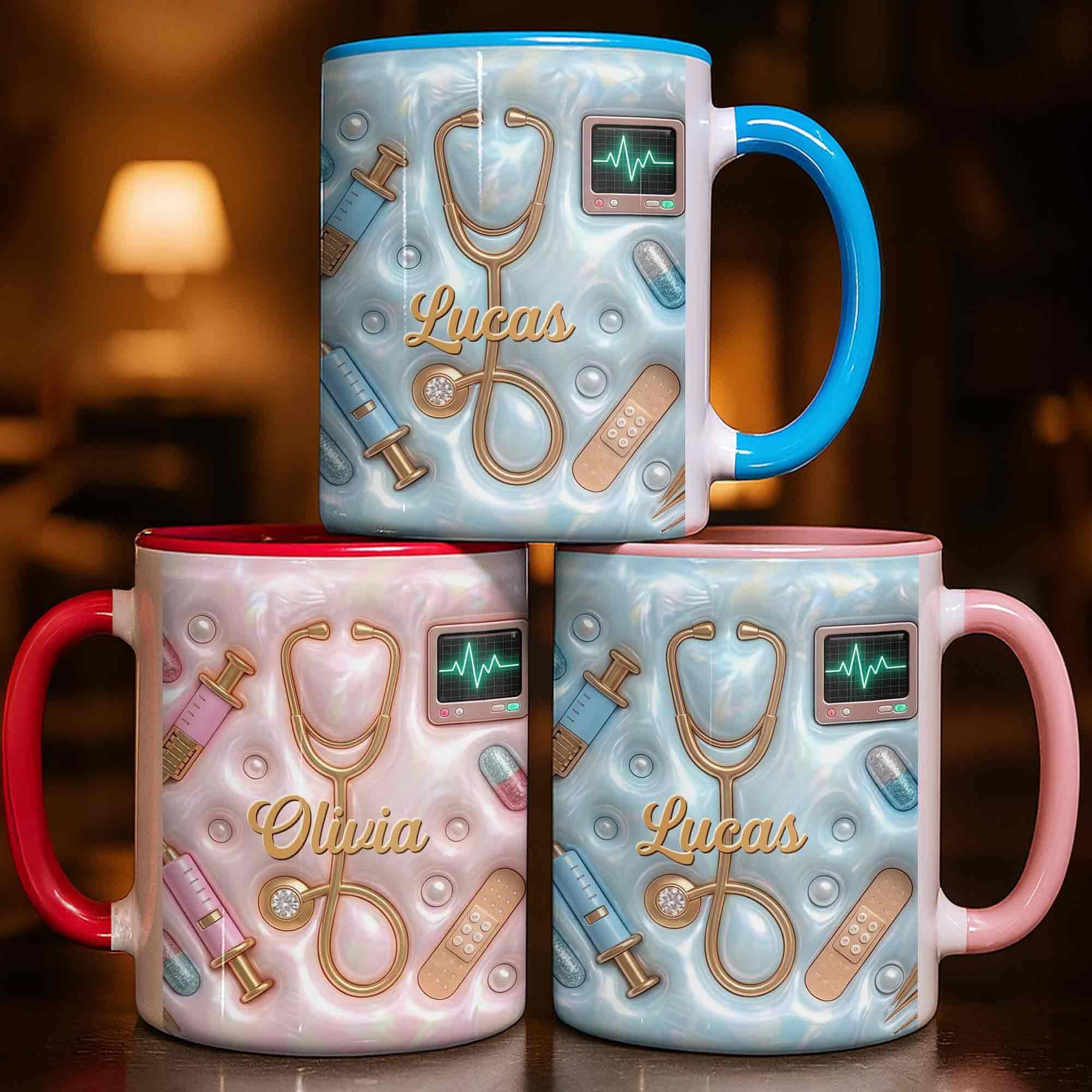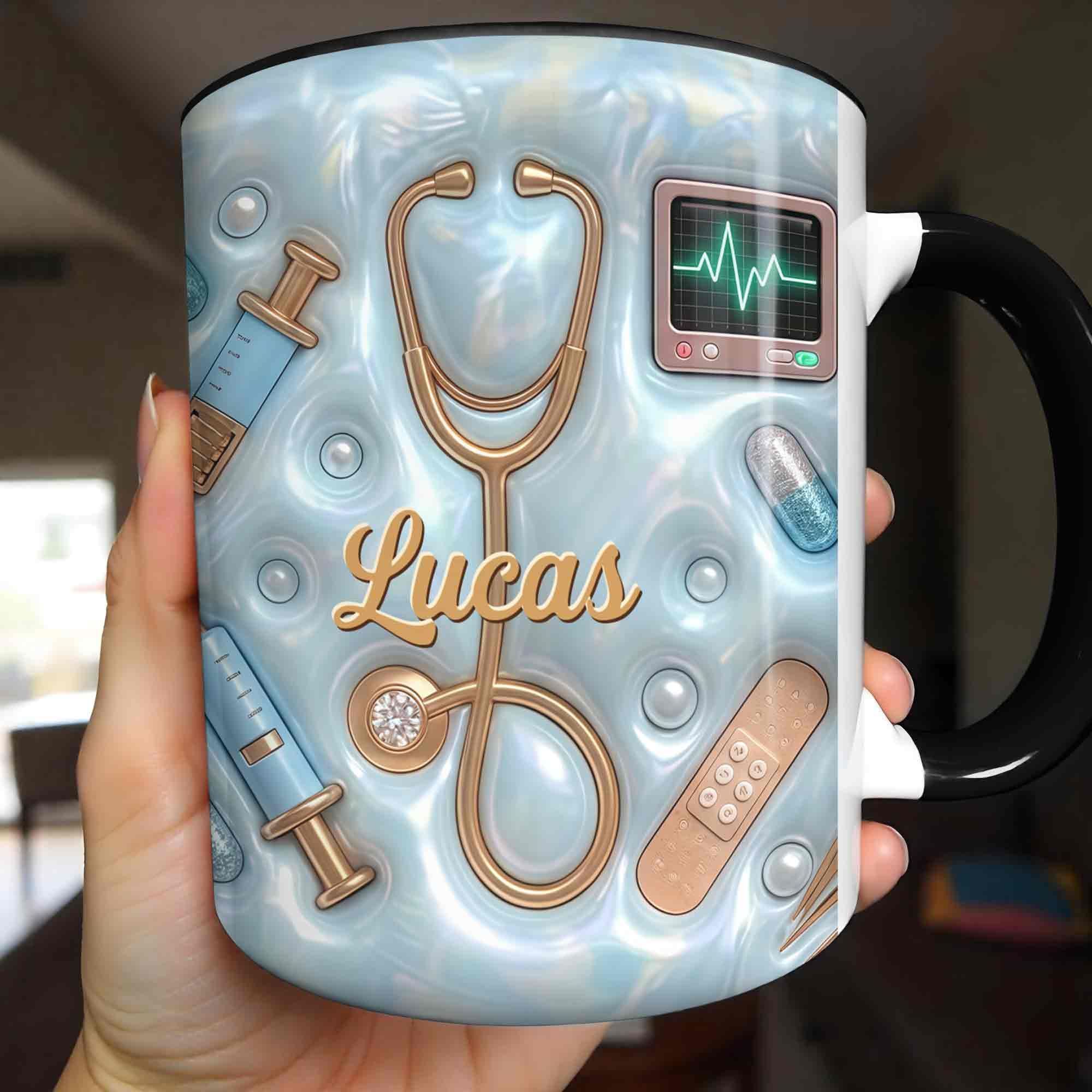 Geschenk für Krankenschwester – personalisierte Tasse mit 3D medizinischen Werkzeugen & Perlen-Design – liebevolle Wertschätzung für Pflegekräfte