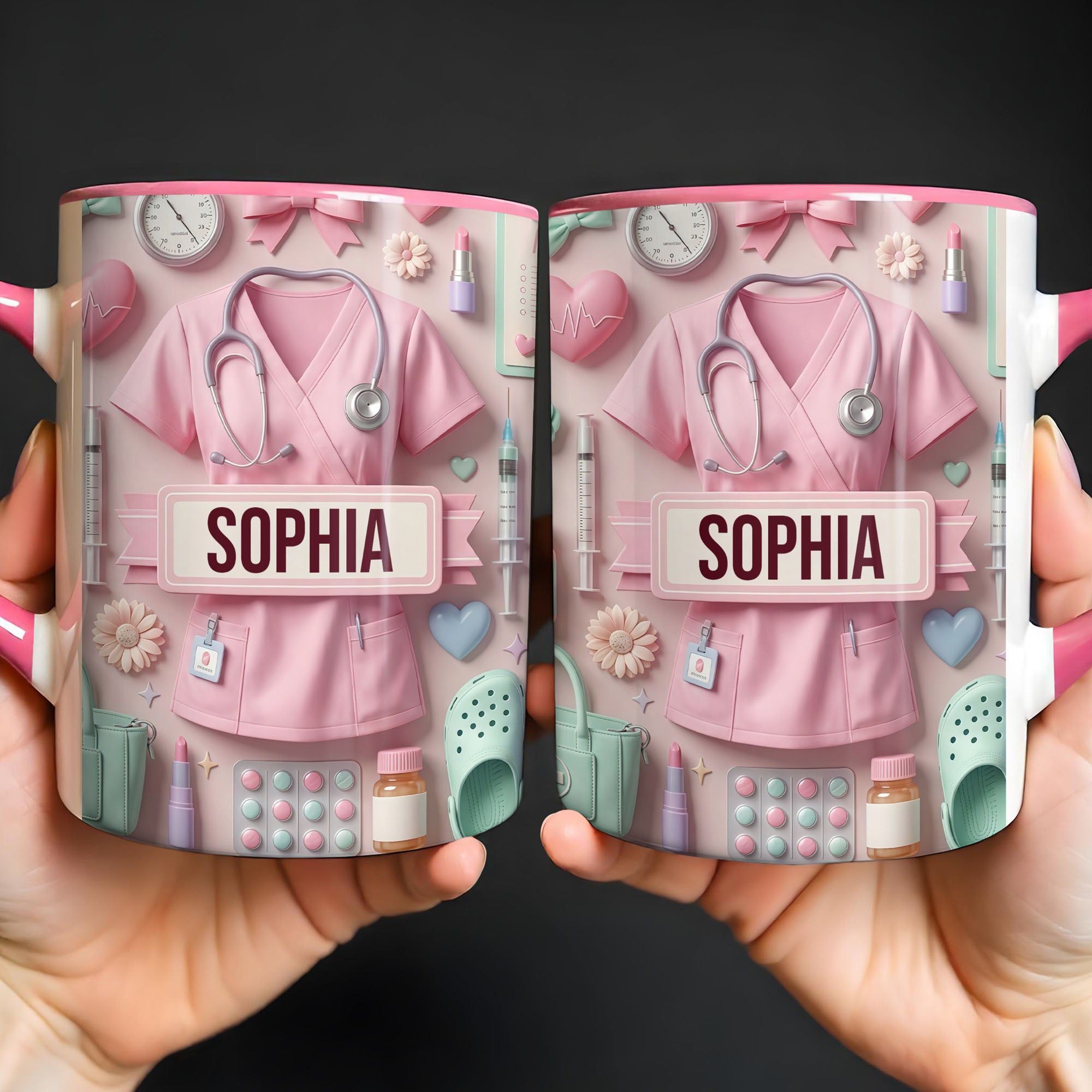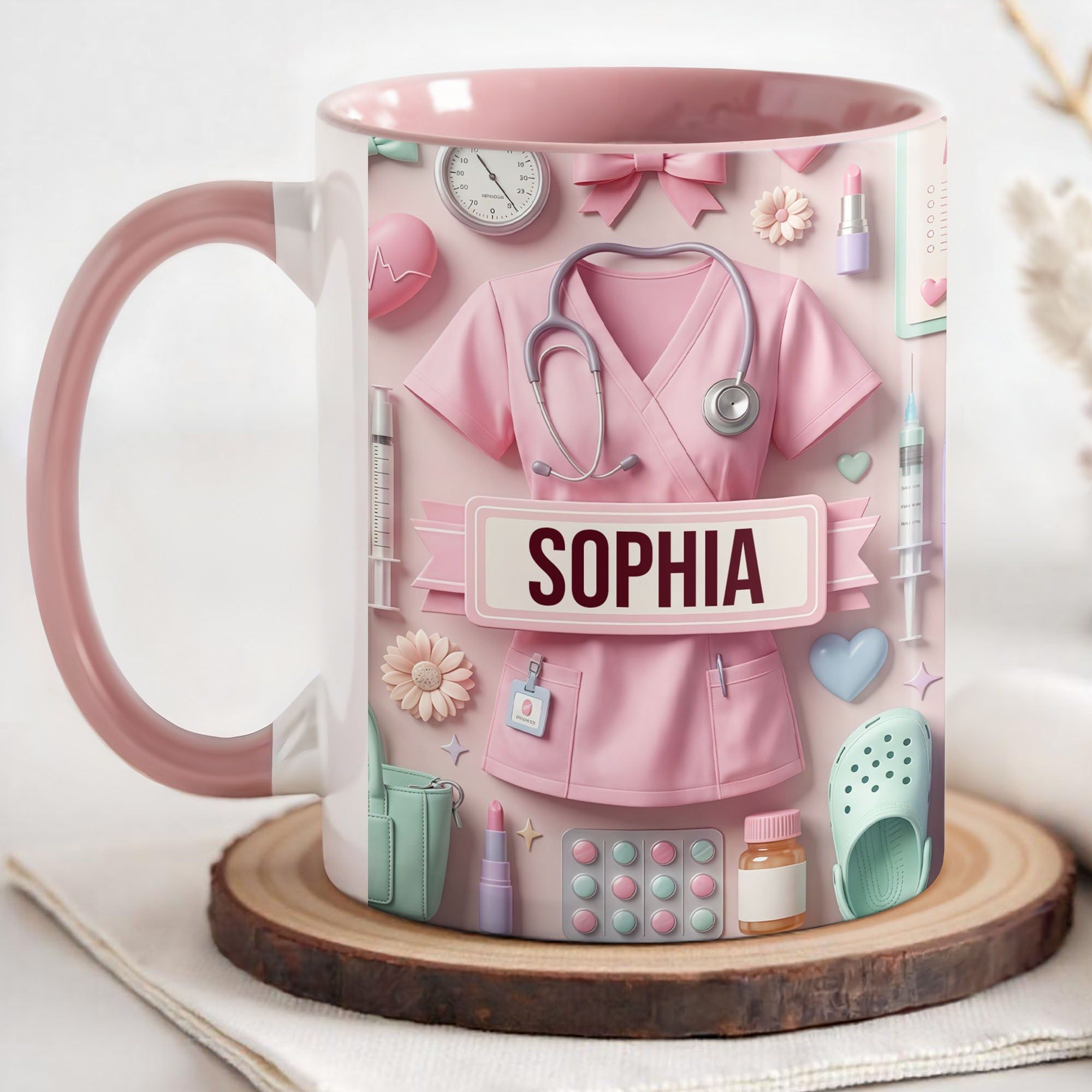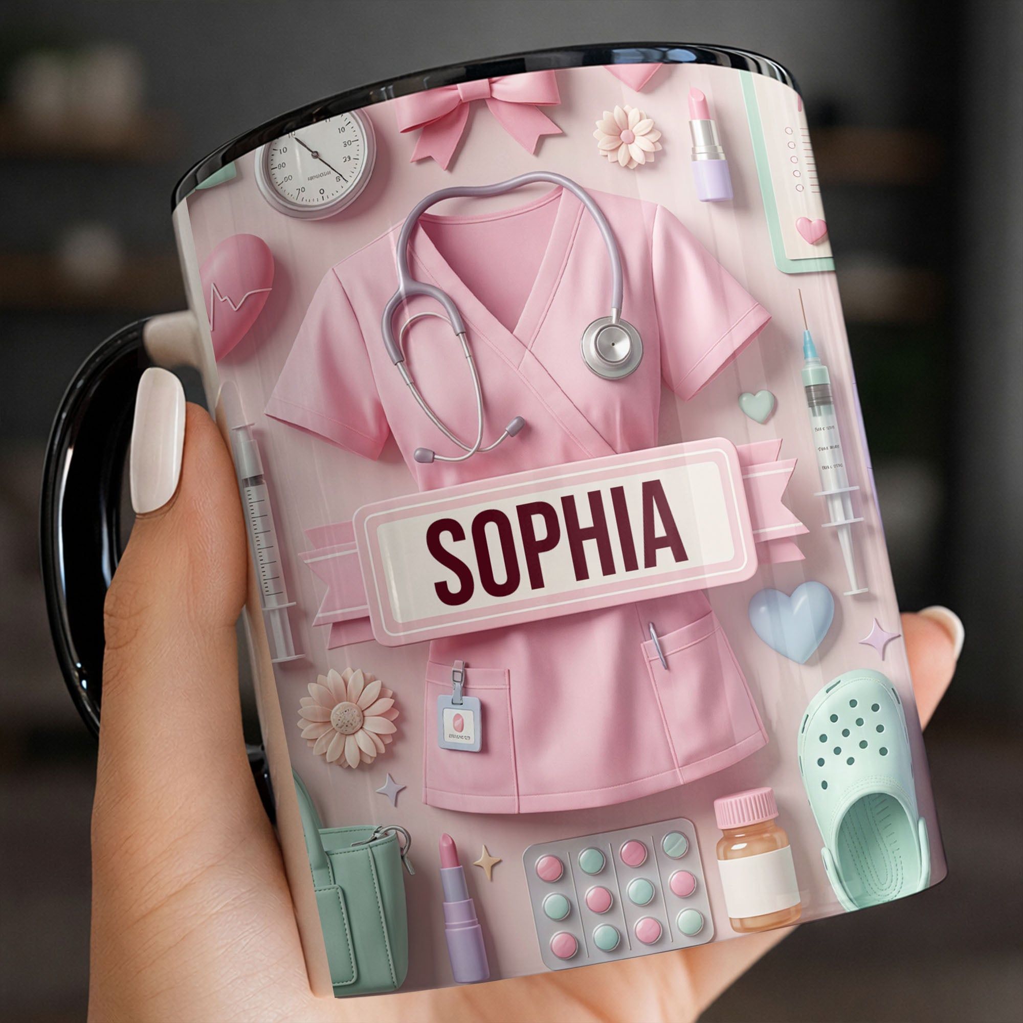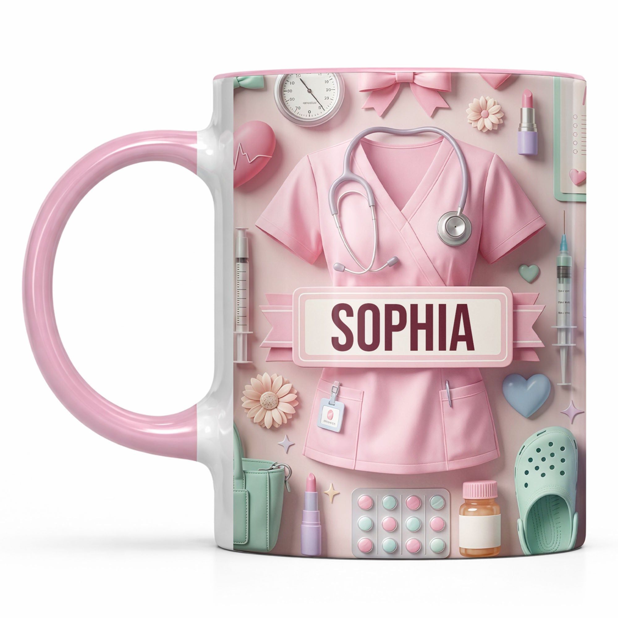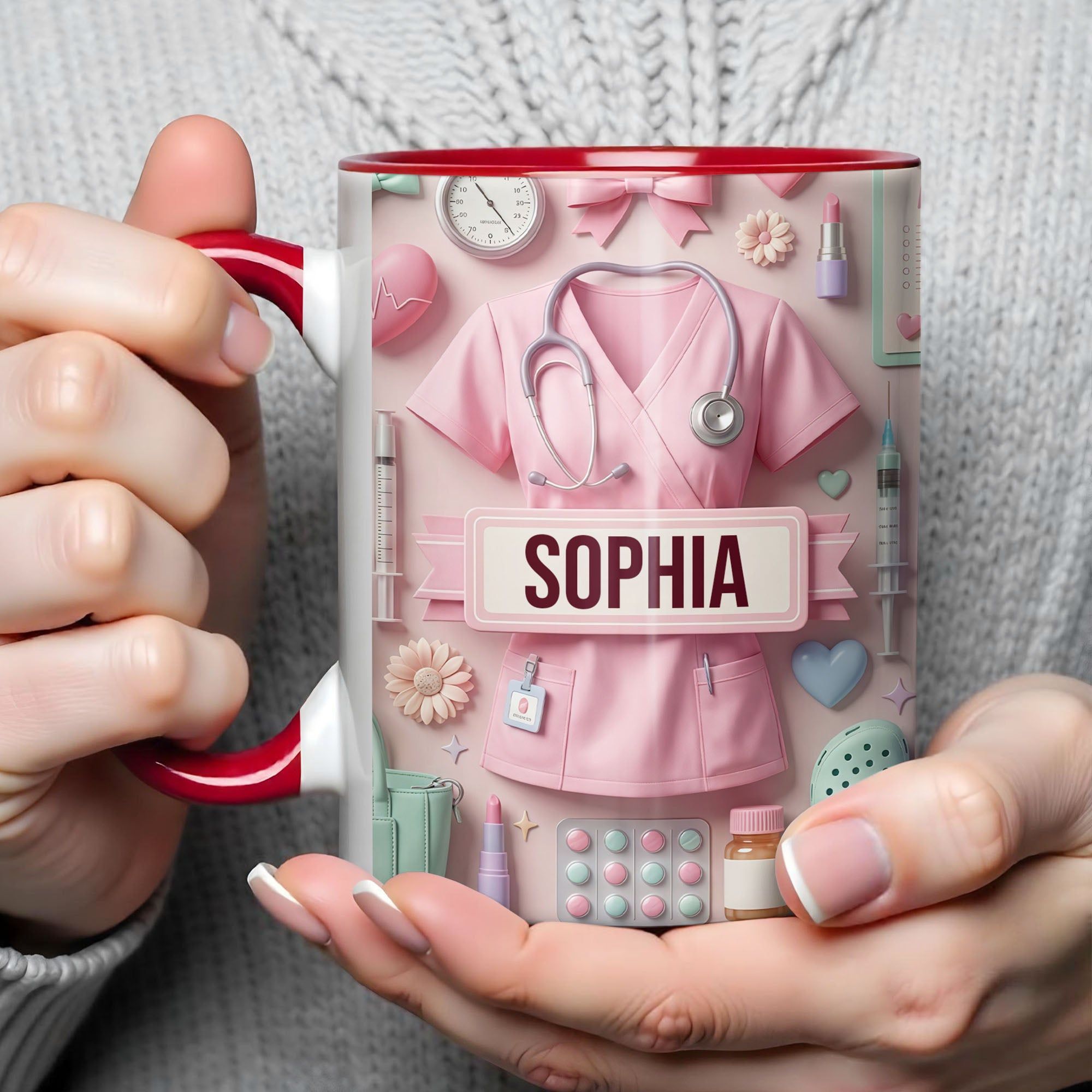 Liebevolle personalisierte Krankenschwester Tasse – einzigartiger Pflege Becher mit süßem Medical Design – Geschenk für Pflegerin