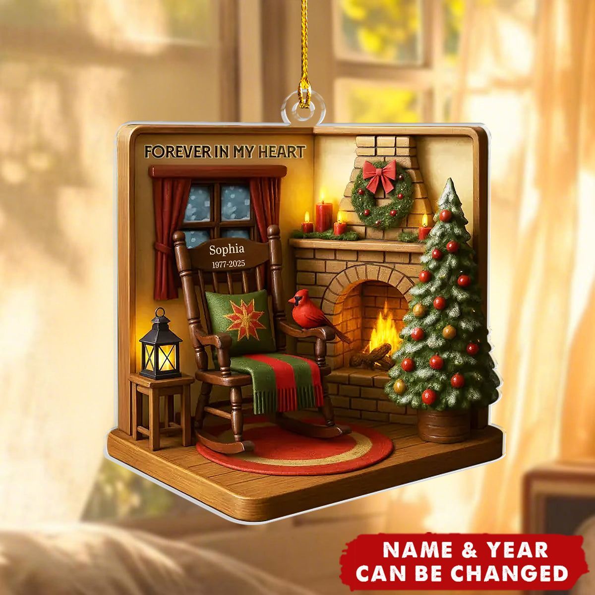 Mit ihrem Namen personalisiert, ist es eine sanfte Erinnerung daran, dass diejenigen, die wir lieben, niemals wirklich fort sind – ihre Liebe strahlt durch jede Erinnerung, so wie Licht durch dieses zarte Acryl-Design tanzt. Hängen Sie es an Ihren Baum oder Ihr Fenster, wo ihre Präsenz am stärksten zu spüren ist.